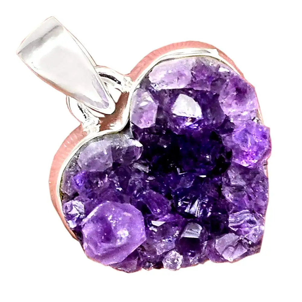 Genuine HEART AMETHYST DRUZY Pendant 925 Sterling Silver 29.8 mm AP6687