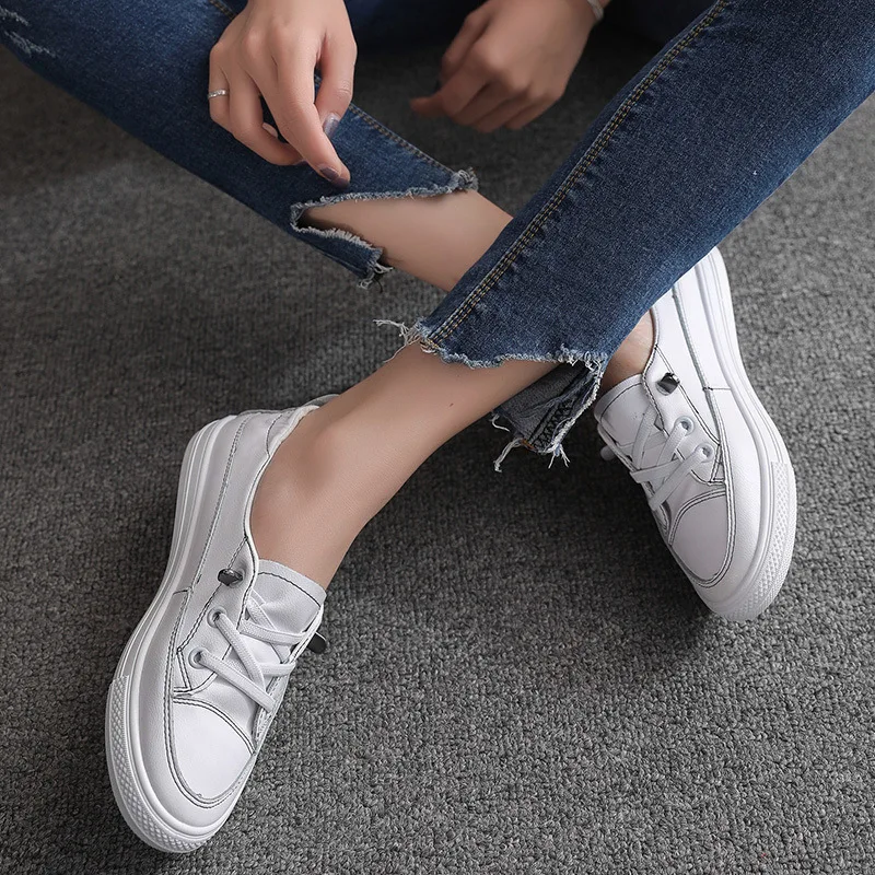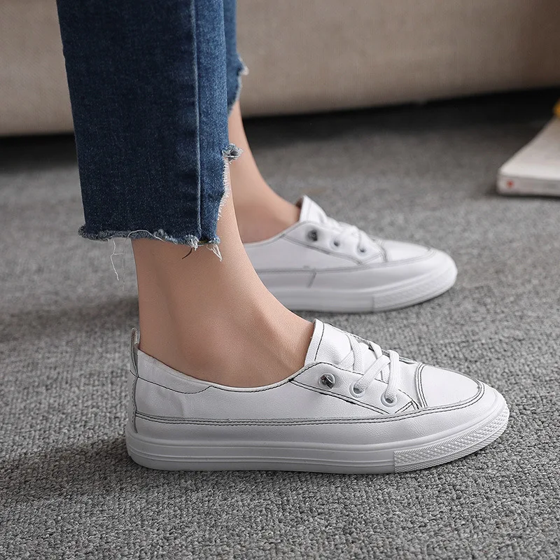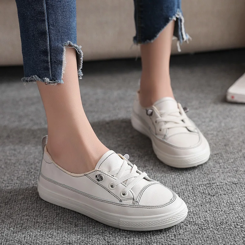 2020 New Spring and Summer Casual classic little White Shoes for Women Flat pu Leather Board outdoo